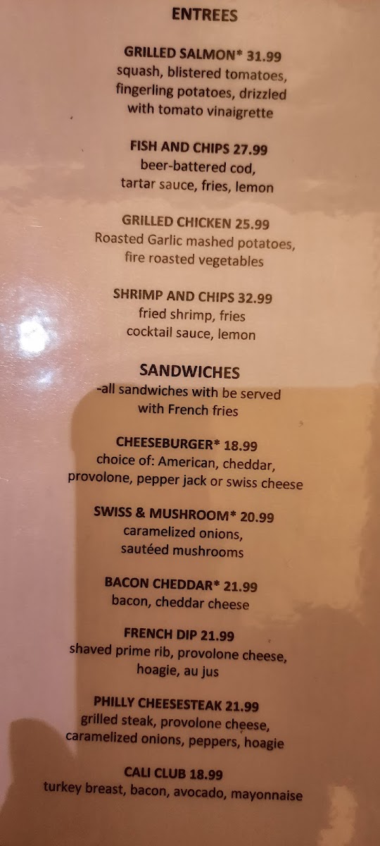 The menu offers a variety of traditional American fare organized into several key sections to accommodate different dining preferences. For starters and lighter options, there are homemade soups such as New England Clam Chowder and French Onion Soup, alongside small salads like House Salad and Caesar Salad. These items provide a range of lighter, casual choices suitable for a quick meal or appetizer.