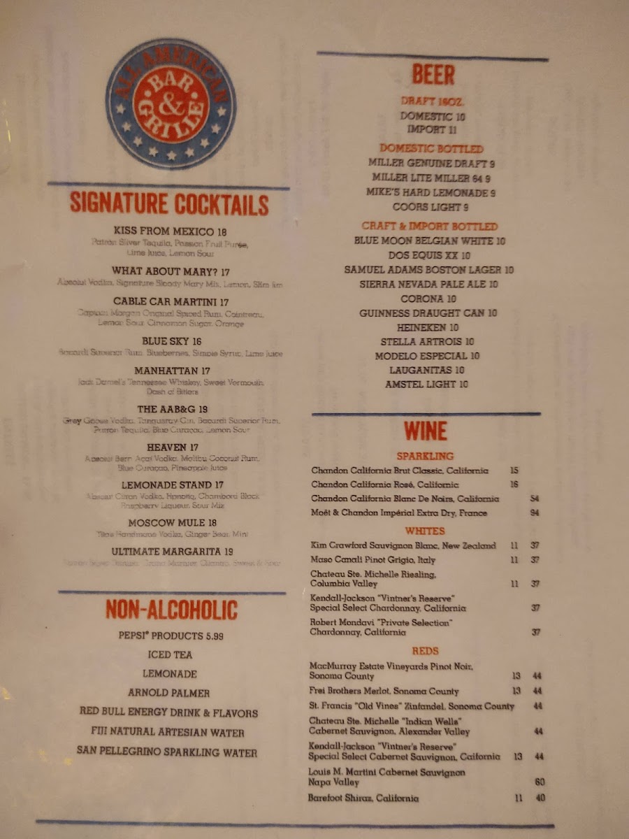 All-American Bar & Grille Menu